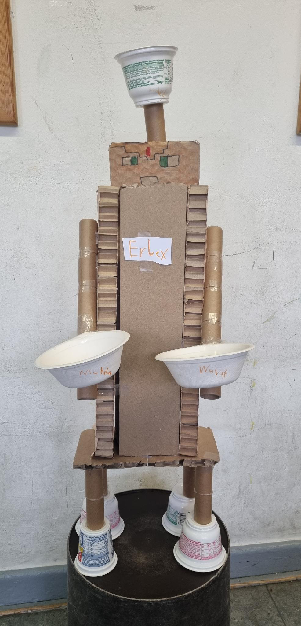 Im Rahmen des Sachunterrichts haben die Klassen 2b und 2d verschiedene Bauwerke aus selbst mitgebrachten Alltagsmaterialien geplant, gebaut und präsentiert. In Gruppenarbeitsphasen entwickelten sie eigene Bauideen und setzten diese gemeinsam passend zum Thema „Bauen und Konstruieren“ um.