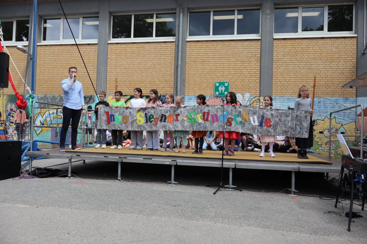 Eine der Höhepunkte des Tages war die feierliche Verkündung des neuen Namens der Schule. Ab sofort trägt unsere Schule den Namen "Ingo-Siegner-Grundschule", benannt nach dem bekannten Kinderbuchautor. „Wir feiern also nicht nur das Ende eines Schuljahres, sondern auch den Start eines neuen Kapitels in der 150-jährigen Geschichte unserer Schule,“ sagte Schulleiter Sven Többen in seiner Rede.