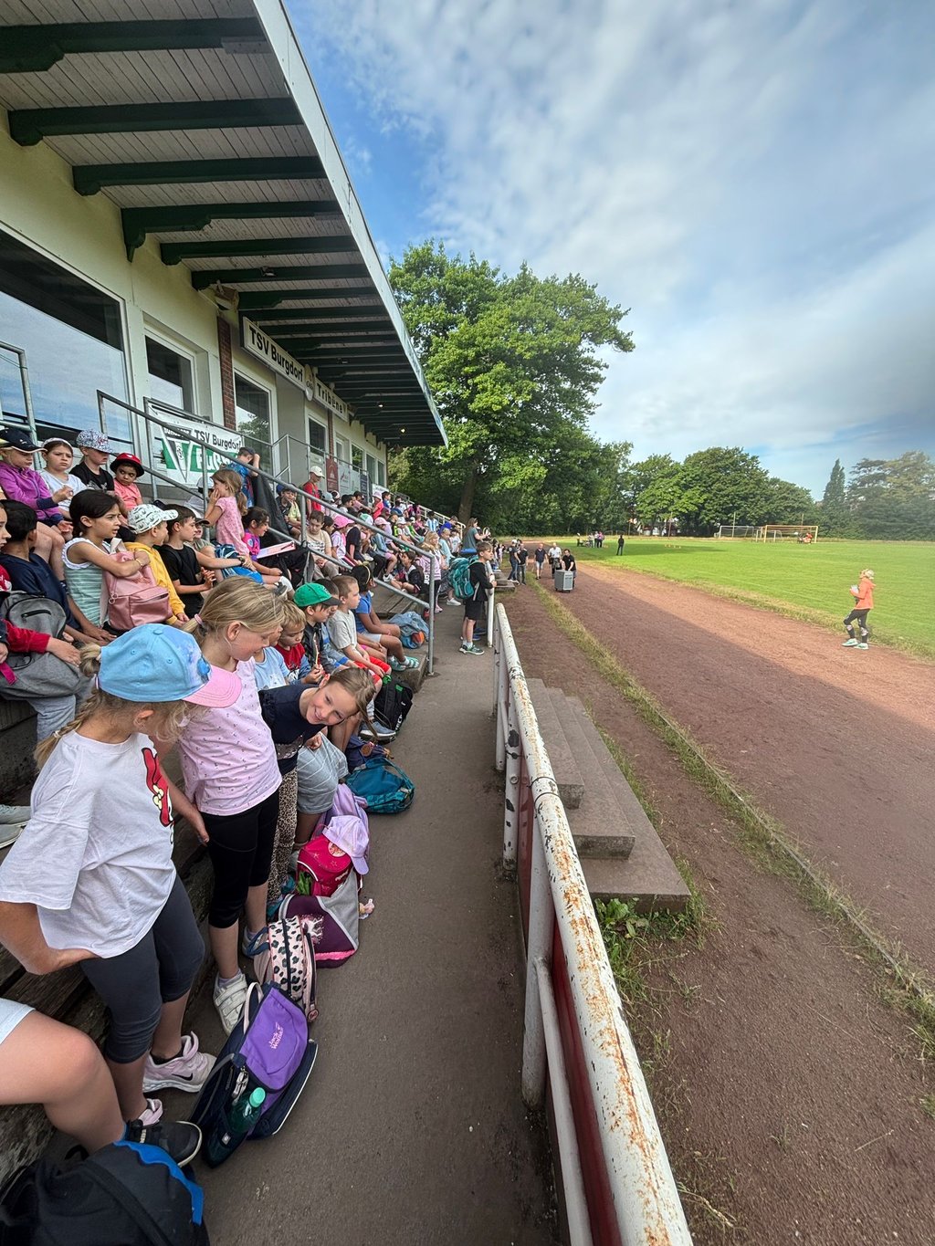 Einen Tag später, am Dienstag, den 24.06., wurde es für die Klassen 3 und 4 sportlicher: In den klassischen Disziplinen Laufen, Springen und Werfen zeigten unsere Dritt- und Viertklässler ihr Können.